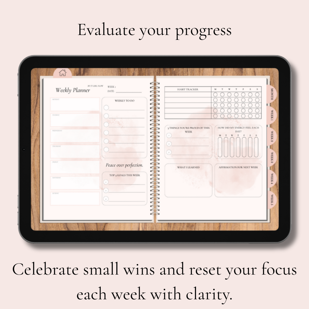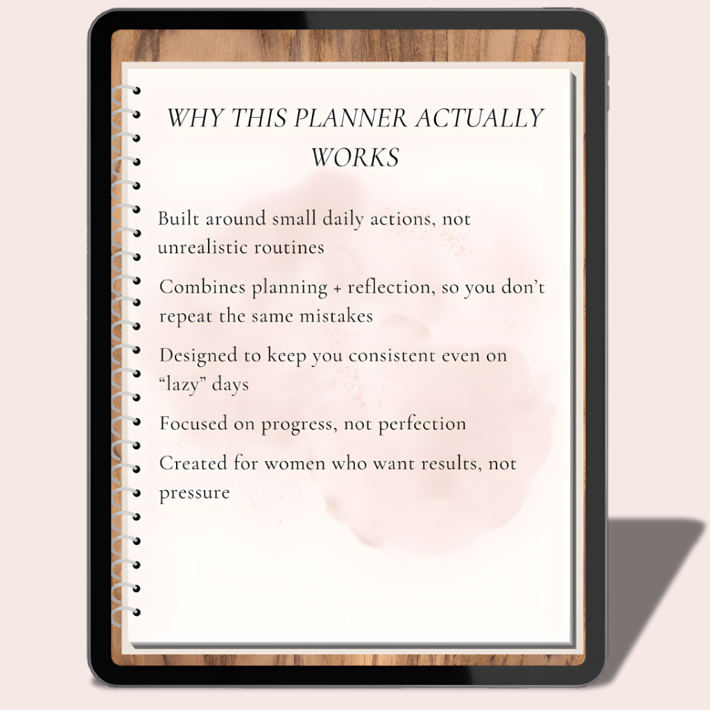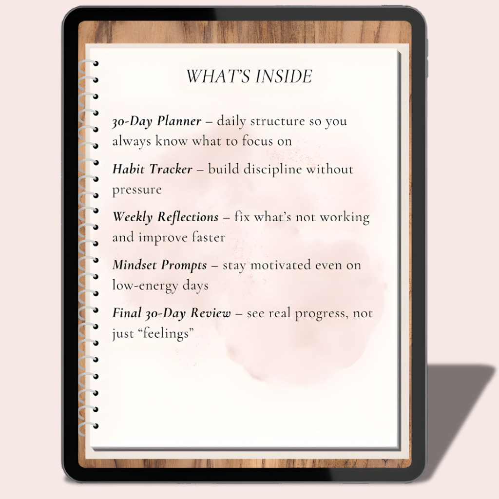 No extra apps, no complicated systems. You get a guided 30-day planner, habit tracking, weekly reflections, and a final review page so you can measure real progress.
